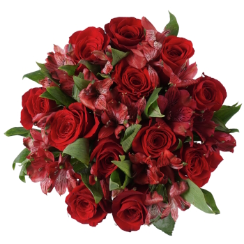MONOCHROMATIC RED ALSTROMERIA AND 40 CM ROSE 18 STEM