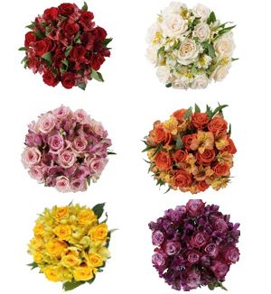 MONOCHROMATIC ALSTROMERIA AND 50 CM ROSE RAINBOW PACK 18 STEM BOUQUET