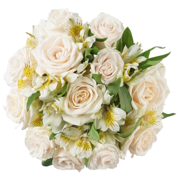 MONOCHROMATIC WHITE ALSTROMERIA AND 40 CM ROSE 18 STEM