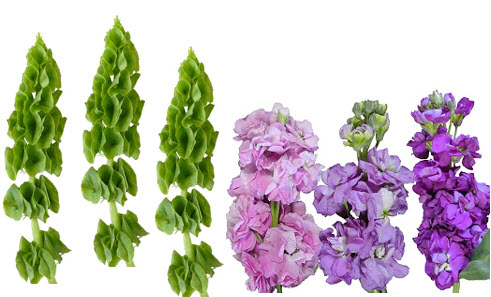 5 ASSORTED COLORS & 5 70CM BELLS OF IRELAND
